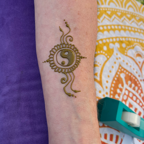 Henna is a natural plant dye used for religious ceremonies, wedding festivals, and for simple body adornment. Designs last from 1-3 weeks, typically around 7-10 days.